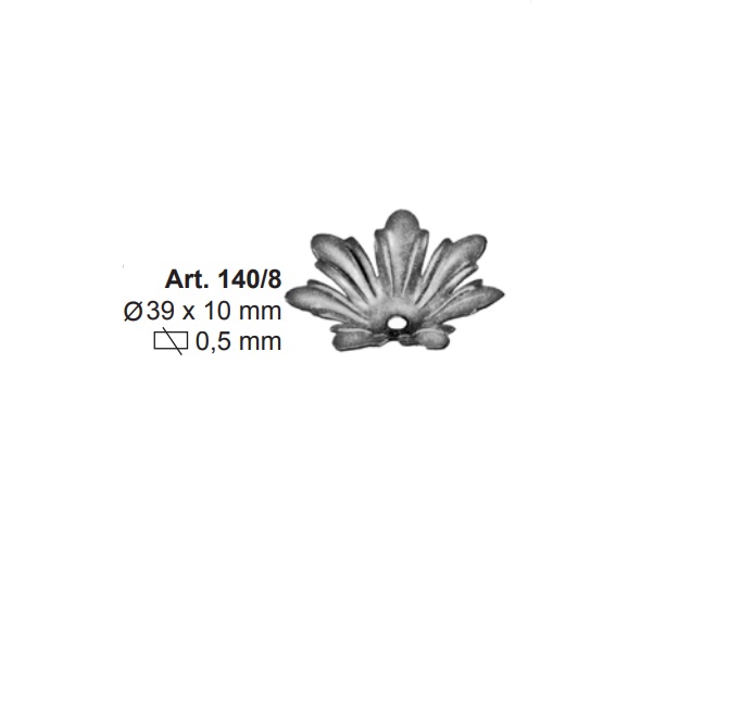 Accesorio para rejas tipo flor 39mm de diametro y 10mm de alto. Material, chapa