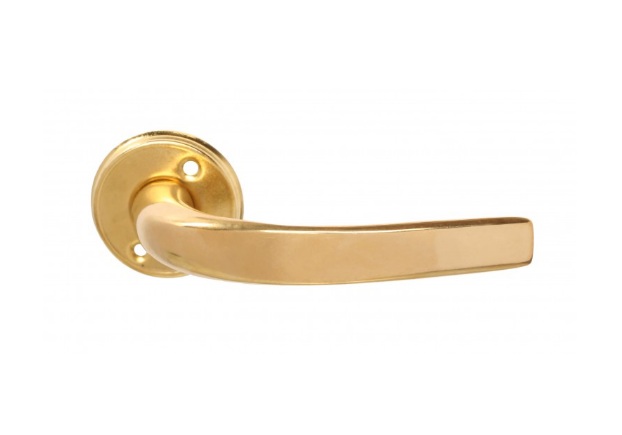 Manija doble balancin Gauchita con roseta de Chapa zincada de 42 mm. tornillos a la vista, con perno roscado. Disponibles en acabados Pulido y Niquelado.