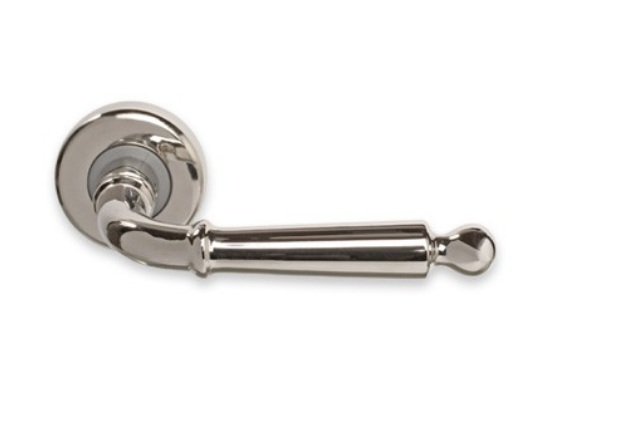 Manija giratoria De La Abuela con roseta de Nylon y tapa de Bronce de 48 mm. tornillos ocultos y sistema de retroceso. Consultar acabados disponibles.