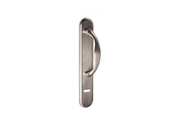Manijon Sigma con plaqueta 270 x 45mm con marco borde curv. Tornillos ocultos. Bocallave ajuste cilindro. Acompaña a las manijas Sigma, Epsilon, Lyra y Beta.Consultar acabados disponibles.