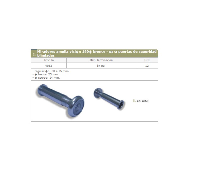 Mirador en bronce pulido con regulacion de 50 a 75 mm, frente de 25mm y cuerpo de 14mm.
