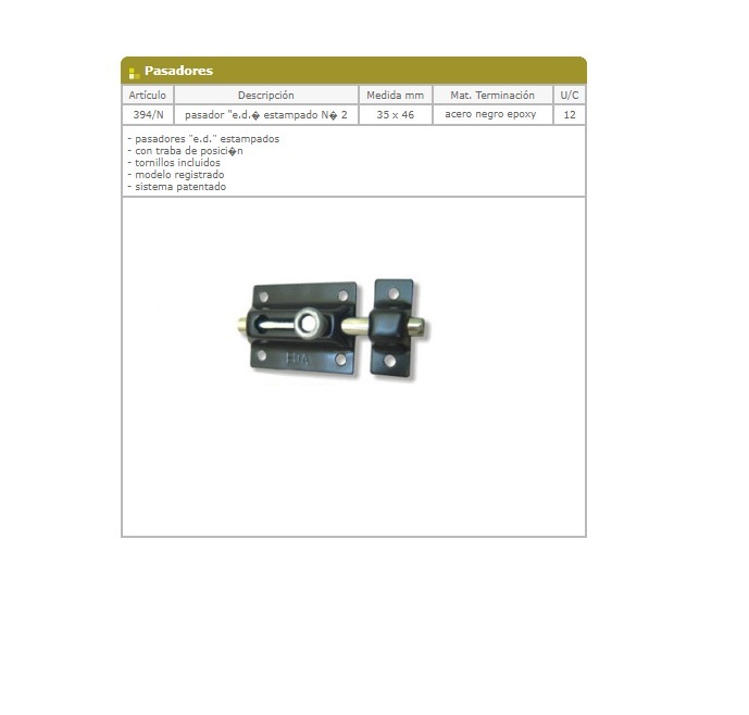 Pasador estampado con traba de pocision, con caja de 35 x 46 mm de hierro negro epoxy