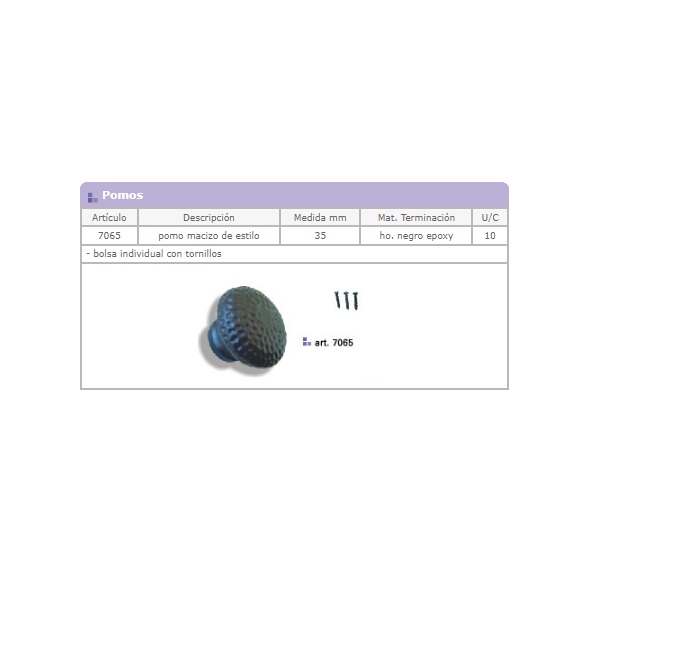 Pomo tirador de estilo macizo de 35mm en hierro epoxy negro