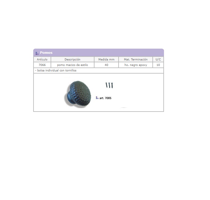 Pomo tirador de estilo macizo de 40mm en hierro epoxy negro